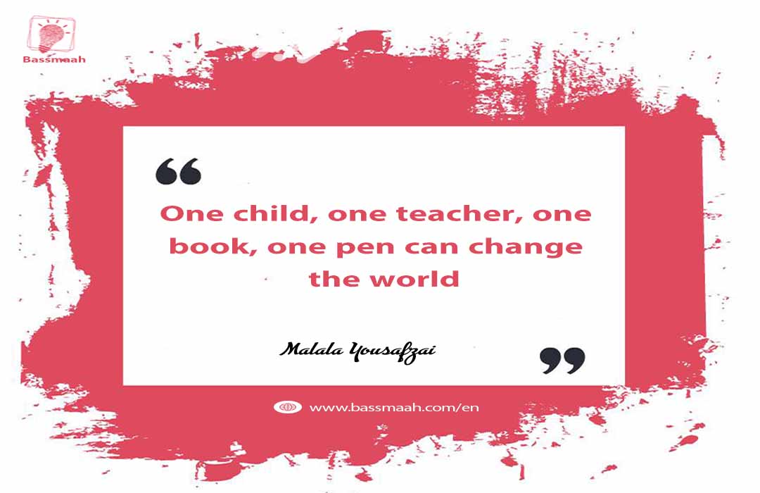 One child, one teacher, one book, one pen can change the world - Bassmaah