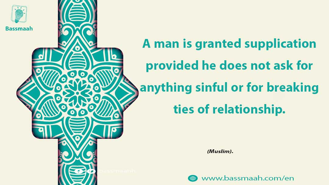 A man is granted supplication provided he does not ask for anything sinful or for breaking ties of relationship. - Bassmaah