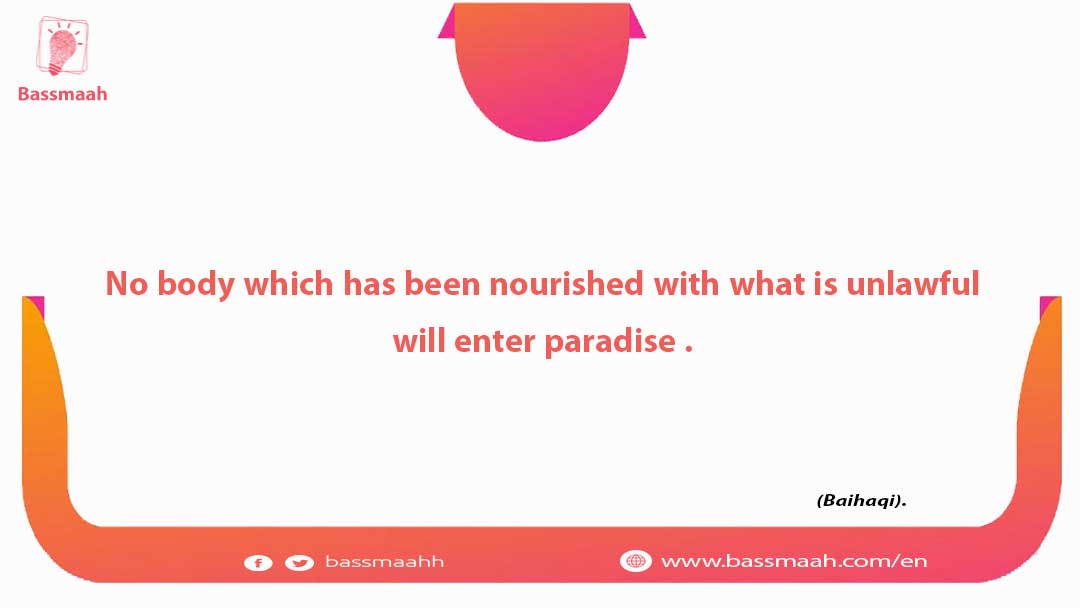 No body which has been nourished with what is unlawful will enter paradise. - Bassmaah