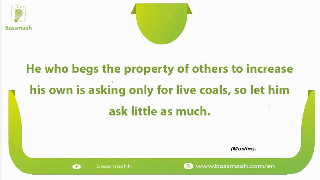 He who begs the property of others to increase his own is asking only for live coals, so let him ask little as much. - Bassmaah