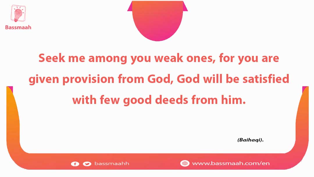 Seek me among you weak ones, for you are given provision from God, God will be satisfied with few good deeds from him - Bassmaah