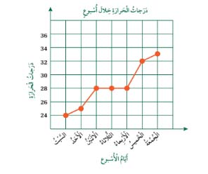 الشكل المجاور يمثل درجات الحرارة المسجلة خلال اسبوع اعتمد على الشكل للاجابة : ما اعلى درجة حرارة سجلت