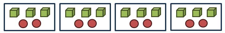 6- اكتب العلاقة التي تمثل عدد المكعبات وعدد الكرات باستخدام خاصية التوزيع.