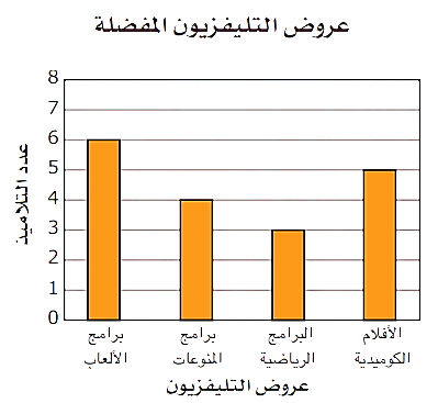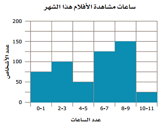 في التمثيل البياني بالأعمدة يمثل كل عمود عدداً واحداً أو فئة واحدة.