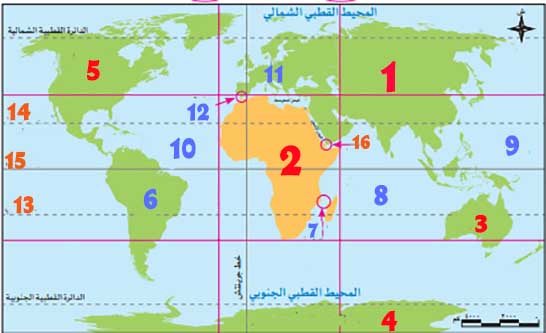 الرقم الذي يشير الى قارة اوروبا على الخريطة هو ............