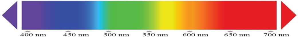 يتراوح الطول الموجيّ للأشعة المرئيّة بين ......